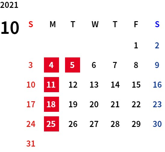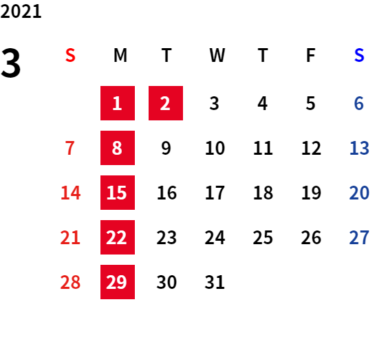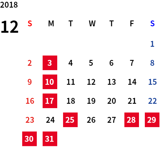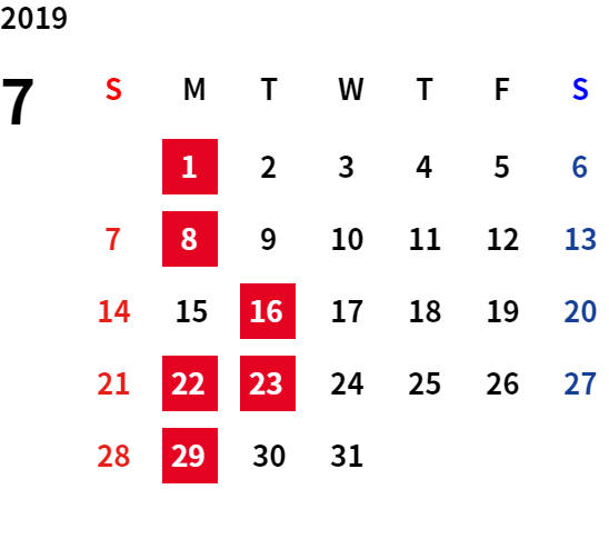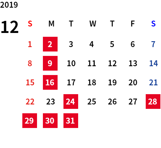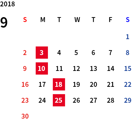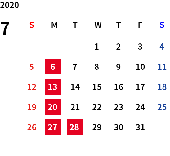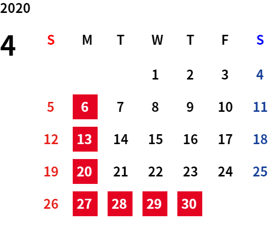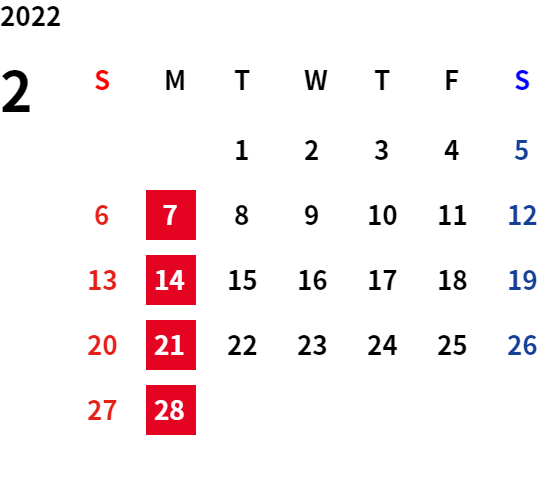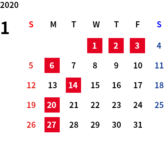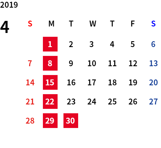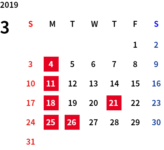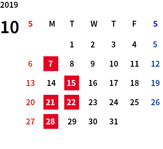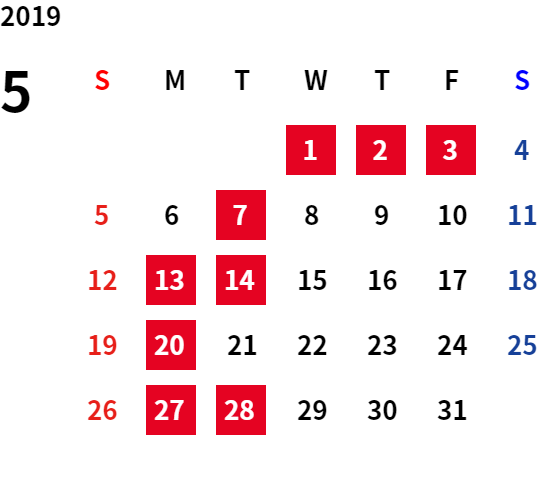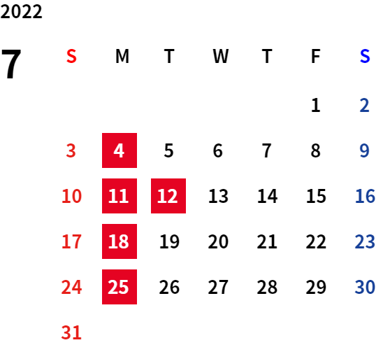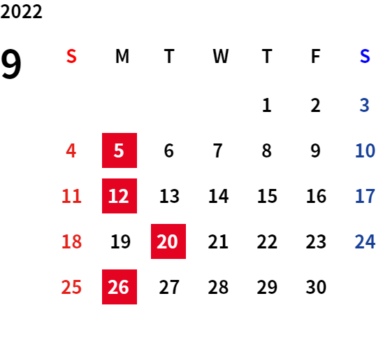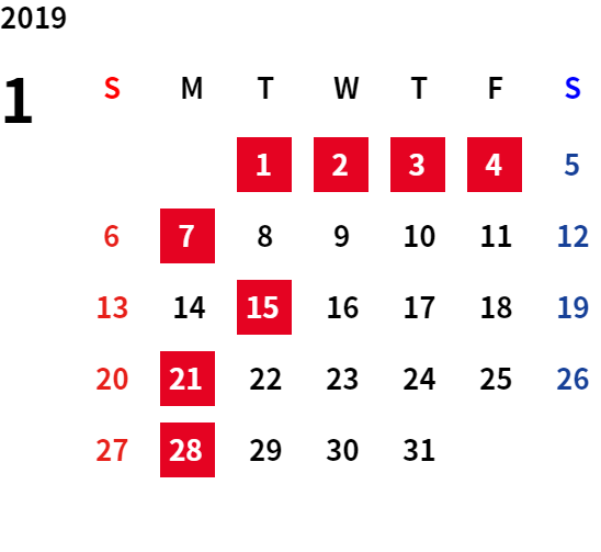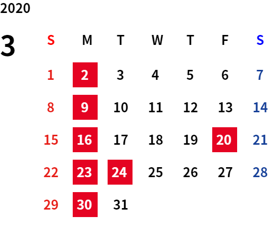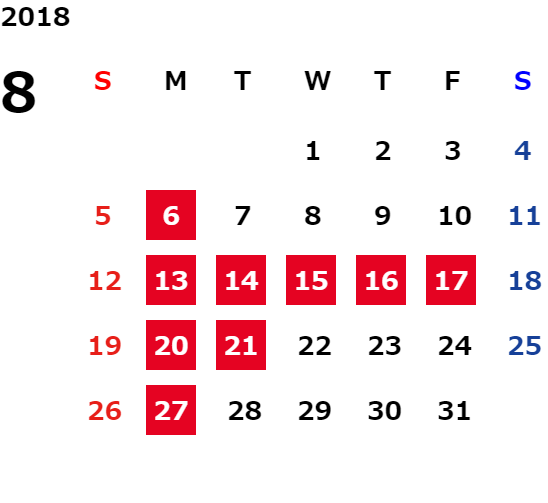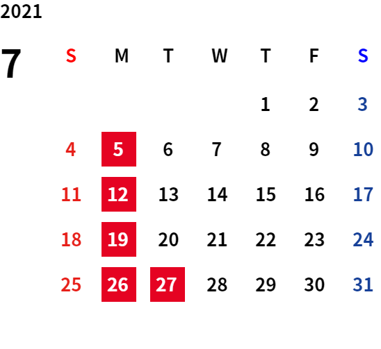 誠に勝手ながら、下記日程は休業日とさせていただきます。