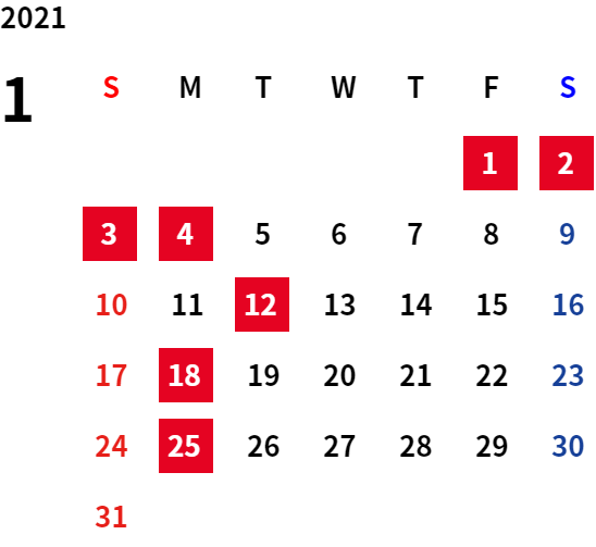 ・令和6年12月28日(土)~令和7年1月3日(金)