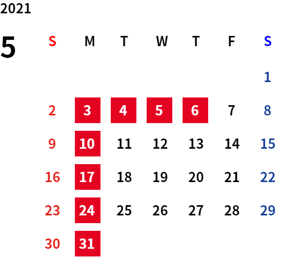 ・令和4年5月2日(月)~令和4年5月6日(金)