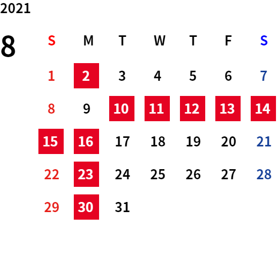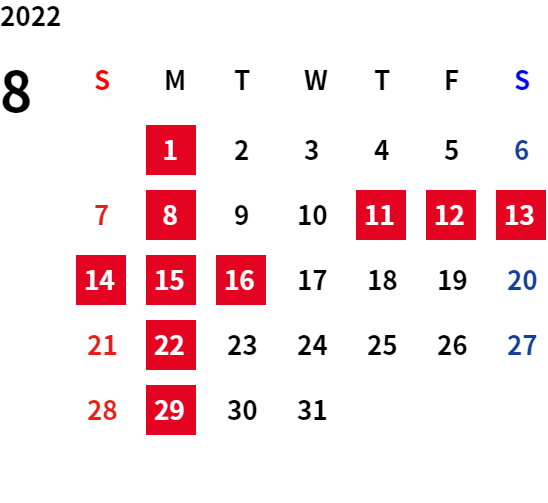 ・令和4年8月11日(木)~令和4年8月16日(火)