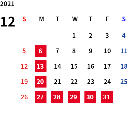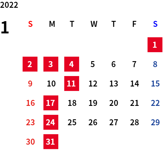 ・令和4年12月28日(水)~令和5年1月4日(水)