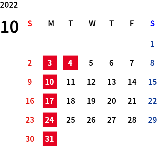 ・令和4年10月31日(月)~令和4年11月3日(木)