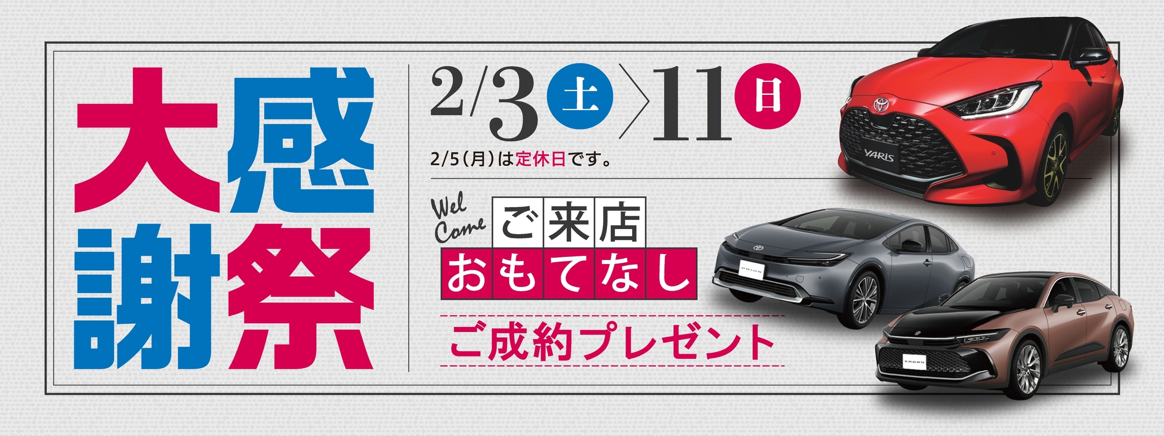 2月3日(土)より2月11日(日)まで(2月5日(月)は定休日)