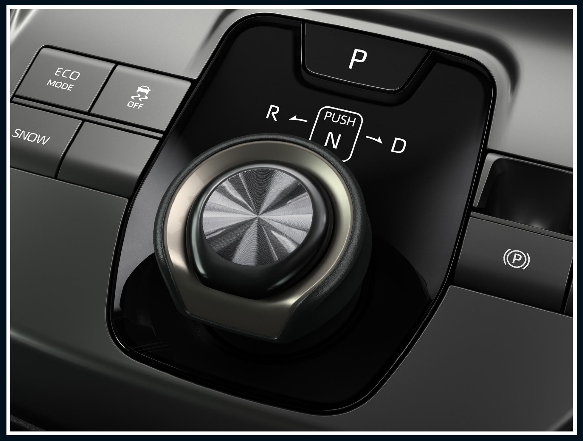 自然に左手を下した位置にある、ダイアル式シフトは