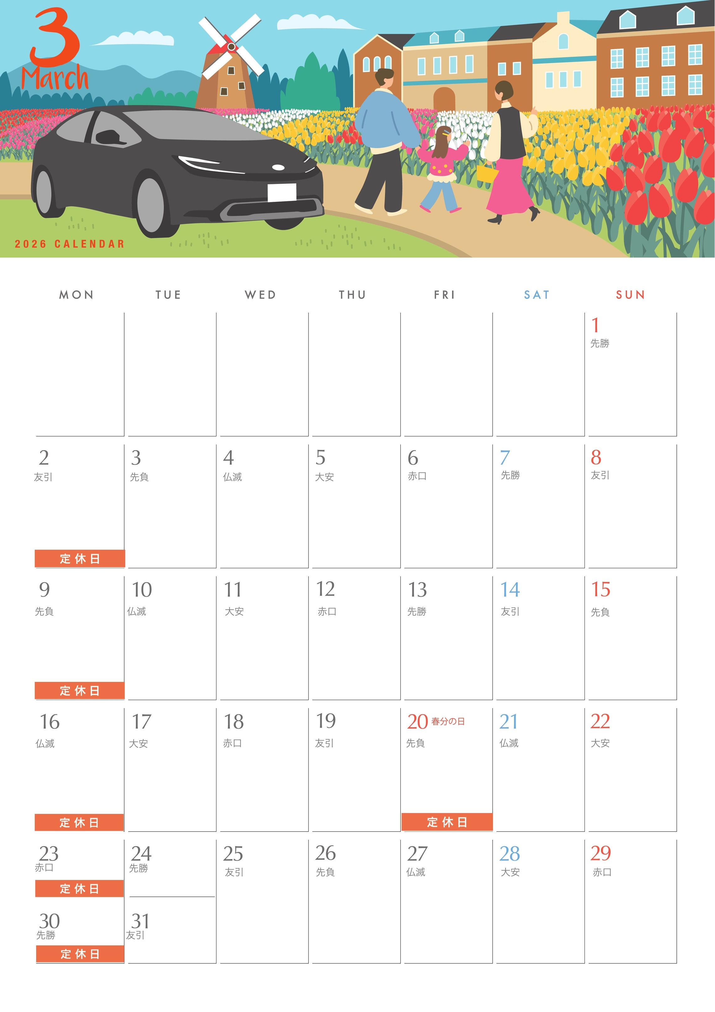 3月は毎週月曜日と20日春分の日も定休日です。