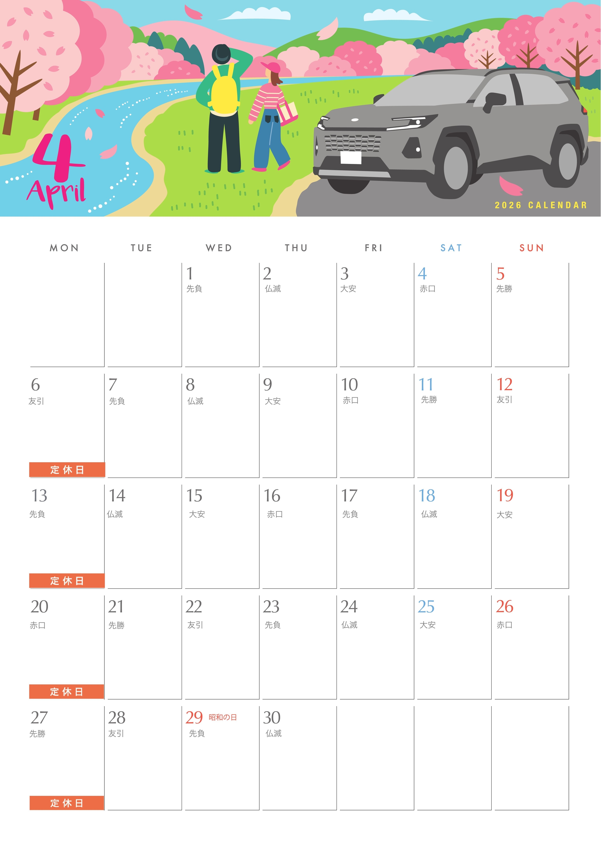 4月の定休日 2026.04.02 定休日 こんにちは!!ブログ担当です!! 4月の定休日のご案内です。 4月は上記のカレンダー通り毎週月曜日が定休日となります。 ご理解の程よろしくお願いいたします。 前の記事へ 店舗ブログ一覧に戻る 次の記事へ