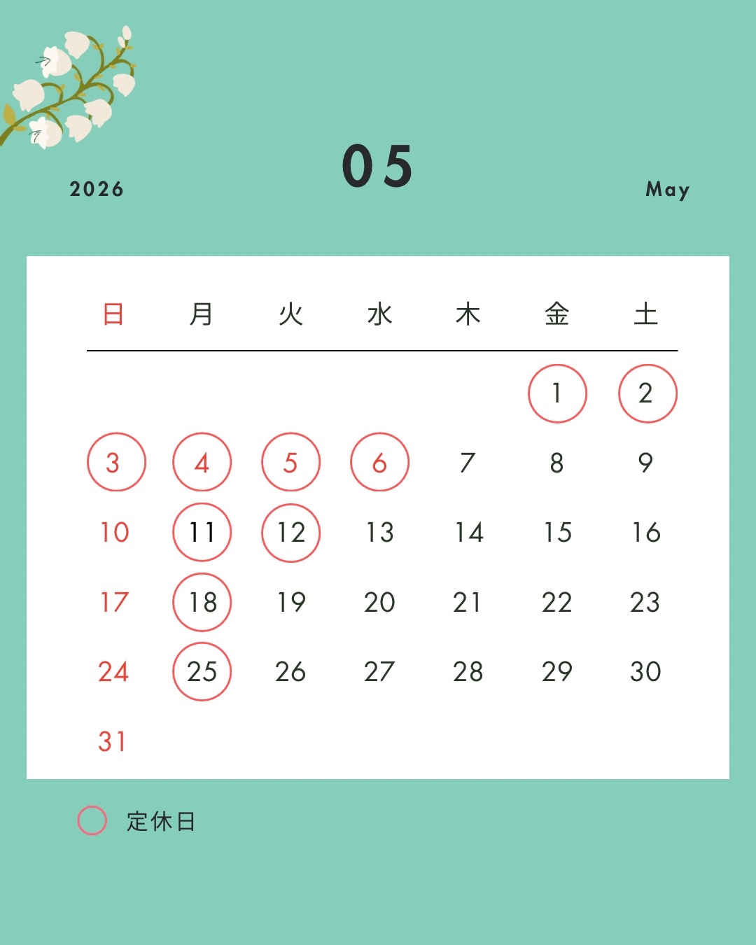 2026年5月1日 (金) 〜 2026年5月6日 (水)