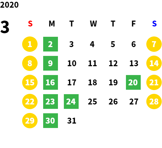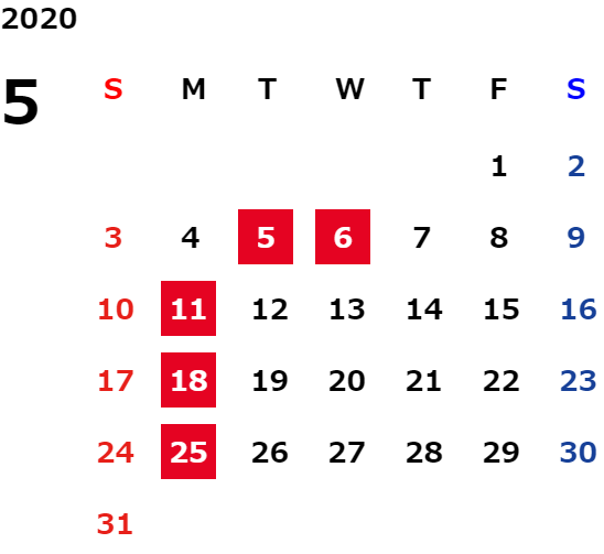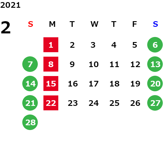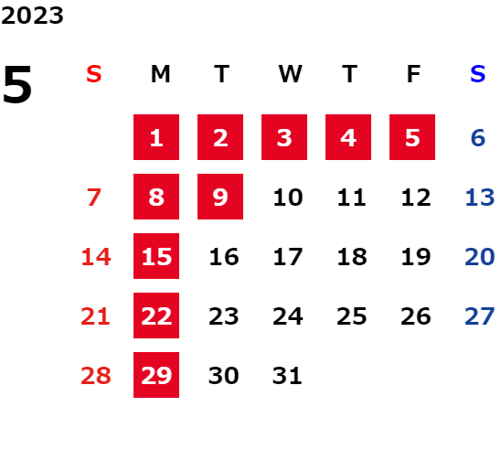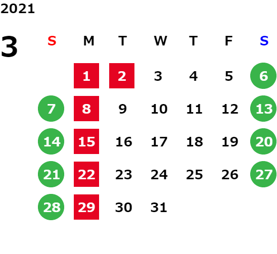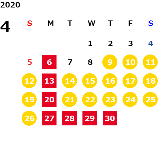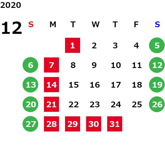 営業日カレンダー