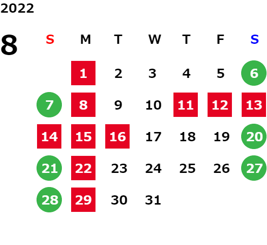 GW、盆、年末年始連休有