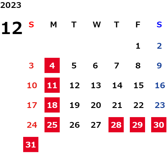 ※詳しくは営業日カレンダーをご覧ください。