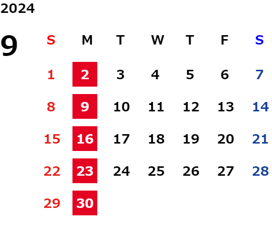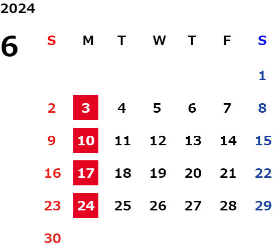 毎週月曜日定休日