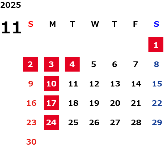 ※2025年11月1日(土)~4日(火)は休業いたします。